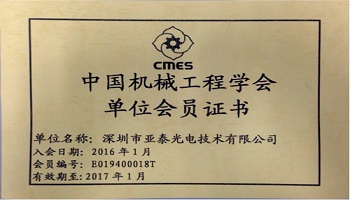 熱烈祝賀深圳市亞泰光電正式成為中國機(jī)械工程學(xué)會單位會員