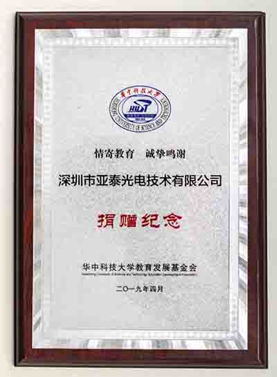捐贈儀式在與會嘉賓的陳陳掌聲中熱列進(jìn)行,各愛心企業(yè)回報母校、回報社會的熱情真真切切,十余年來,亞泰光電在自身發(fā)展的同時,始終沒有忘記社會責(zé)任,把關(guān)心、教育、回饋社會當(dāng)作企業(yè)應(yīng)盡的義務(wù),積極支持華中科技大船海學(xué)院的建設(shè)與發(fā)展,公司向華科大船海學(xué)院捐贈十萬元設(shè)立“亞泰光電金創(chuàng)獎學(xué)金”,在捐贈儀式上亞泰光電鄭總說道:自己現(xiàn)在取得的進(jìn)步離不開母校的培養(yǎng),在華科大度過了人生中最美好的青春年華,讓我收獲了一生當(dāng)中最寶貴的知識財富,希望能用自己的力量回饋母校,期望船海學(xué)院不斷培養(yǎng)優(yōu)秀畢業(yè)生,為國家、社會和學(xué)校建設(shè)添磚加瓦;亞泰光電今后將一始既往的支持學(xué)院的人才建設(shè)。懷念、感謝、展望!