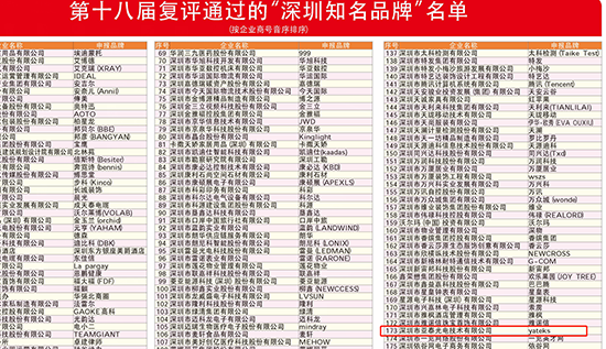 2021年1月21日,第十八屆“深圳知名品牌”評選結果揭曉,深圳市亞泰光電技術有限公司再次復評榮獲第十八屆“深圳知名品牌”殊榮。