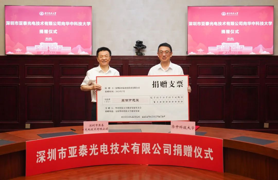 2025年7月17日,在華中科技大學(xué)梧桐語論道廳內(nèi),一場意義非凡的校企合作拉開了帷幕。作為國家級專精特新“小巨人”企業(yè),深圳市亞泰光電技術(shù)有限公司向其母校——華中科技大學(xué)慷慨捐贈了100萬元人民幣設(shè)立“亞泰光電獎教獎學(xué)金”,旨在支持教育事業(yè)的發(fā)展,推動科技人才的培養(yǎng)。此次捐贈不僅是對母校深厚情感的體現(xiàn),更是未來校企合作邁向新高度的重要里程碑。