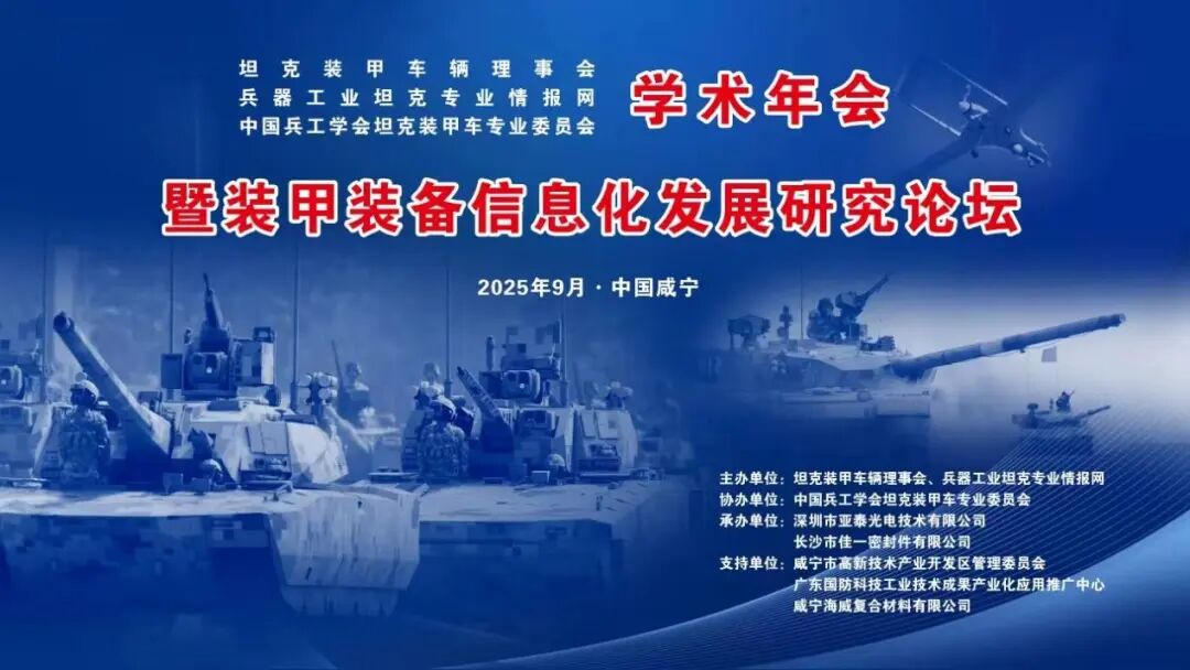 由坦克裝甲車輛理事會、兵器工業(yè)坦克專業(yè)情報網(wǎng)主辦,深圳市亞泰光電技術(shù)有限公司承辦的"2025年坦克裝甲車輛學(xué)術(shù)年會暨裝甲裝備信息化發(fā)展研究論壇"將于9月17日至19日在湖北咸寧華信大酒店隆重舉行。本次會議以"裝甲裝備信息化發(fā)展"為主題,旨在深入探討裝甲裝備信息化前沿技術(shù),推動陸戰(zhàn)裝備智能化轉(zhuǎn)型。