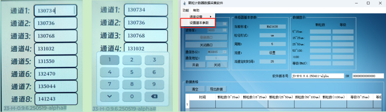 傳感器主界面主要由“標準”、“單位”、“周期”、“流速”、“地址”、“協議”、“語言”、“模式”、“波特率”九個選項組成,檢測操作時將根據以上四項的設置進行;并且傳感器提供上位機軟件。