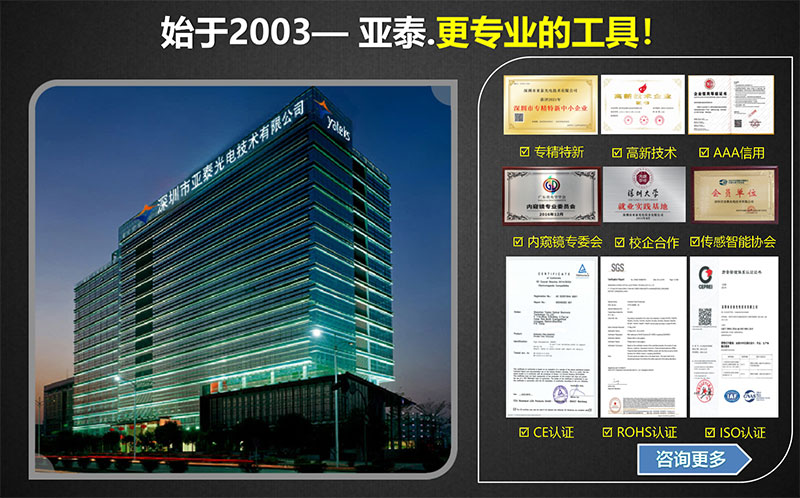 亞泰光電,國家高新技術企業和深圳知名品牌,10余年工業內窺鏡油品分析儀研發、生產行業經驗,國內外知名企業合作供應商,產品優惠熱線:13316911816(微信同號) 0755-86656096 0755-86656390 聯系我們獲取更多優惠詳情,期待您的指導與交流!
